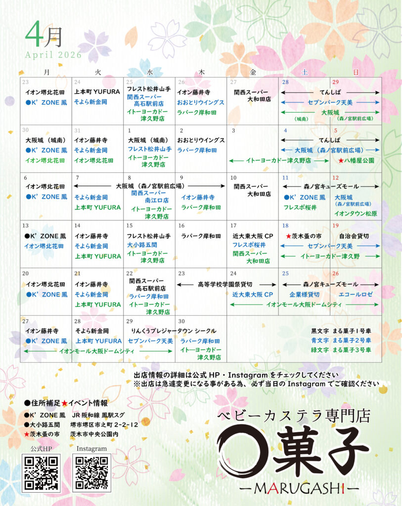 出店スケジュールは下記カレンダーをご覧くださいませ。